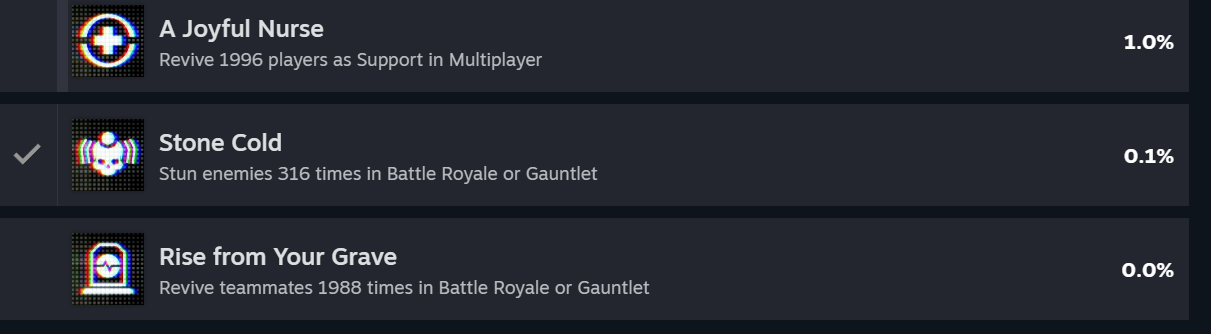 Исключено. Я бы тоже хотел, но этого точно не будет. Как минимум, в основе со старта такая же есть, причём что одну, что вторую добавлял реально какой-то садист, потому что ревайвы параллельно для обоих ачивок в прогресс делать нельзя) Скажем спасибо на том, что они выбиваемые хотя бы