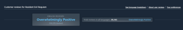 Для сравнения: недавний ремейк Resident Evil 4 собрал более чем в два раза меньший пик (168 191 игроков), а Resident Evil Village уступает почти втрое (106 631 игроков). Ещё заметнее разрыв с более ранней Resident Evil 7 Biohazard (20 449 игроков) и переосмыслениями Resident Evil 2 (74 227 игроков) и Resident Evil 3 (60 293 игроков).