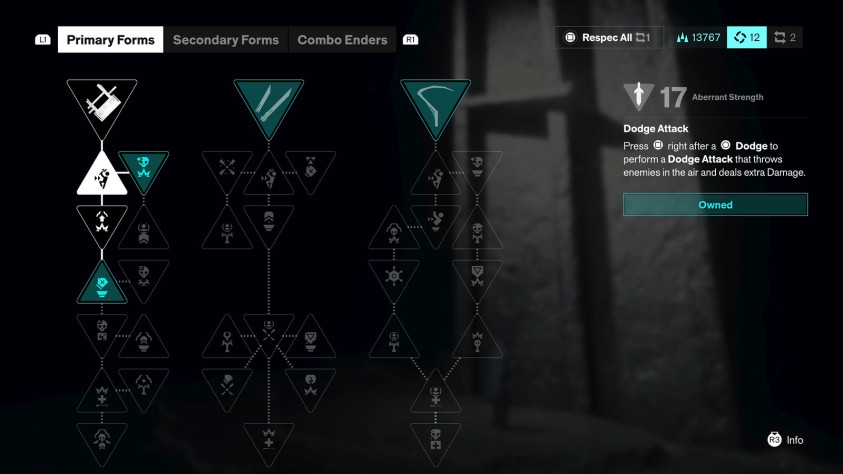 - Оружие Дилана, меняющий форму Аберрант, легко поддаётся кастомизации. Чтобы перенастроить его, игрок погружается внутрь разума протагониста. Там можно выбрать первичную, вторичную, а также ту форму, которая будет завершать комбинации ударов. Также в распоряжении героя древо талантов и умения «резонантов» — их выдают за победу над боссами, этими самыми «резонантами». К примеру, Дилан сможет выставить телекинетический щит, либо призвать союзных существ. На применение умений тратится полоска ресурсов, но энергия восстанавливается при нанесении ударов.