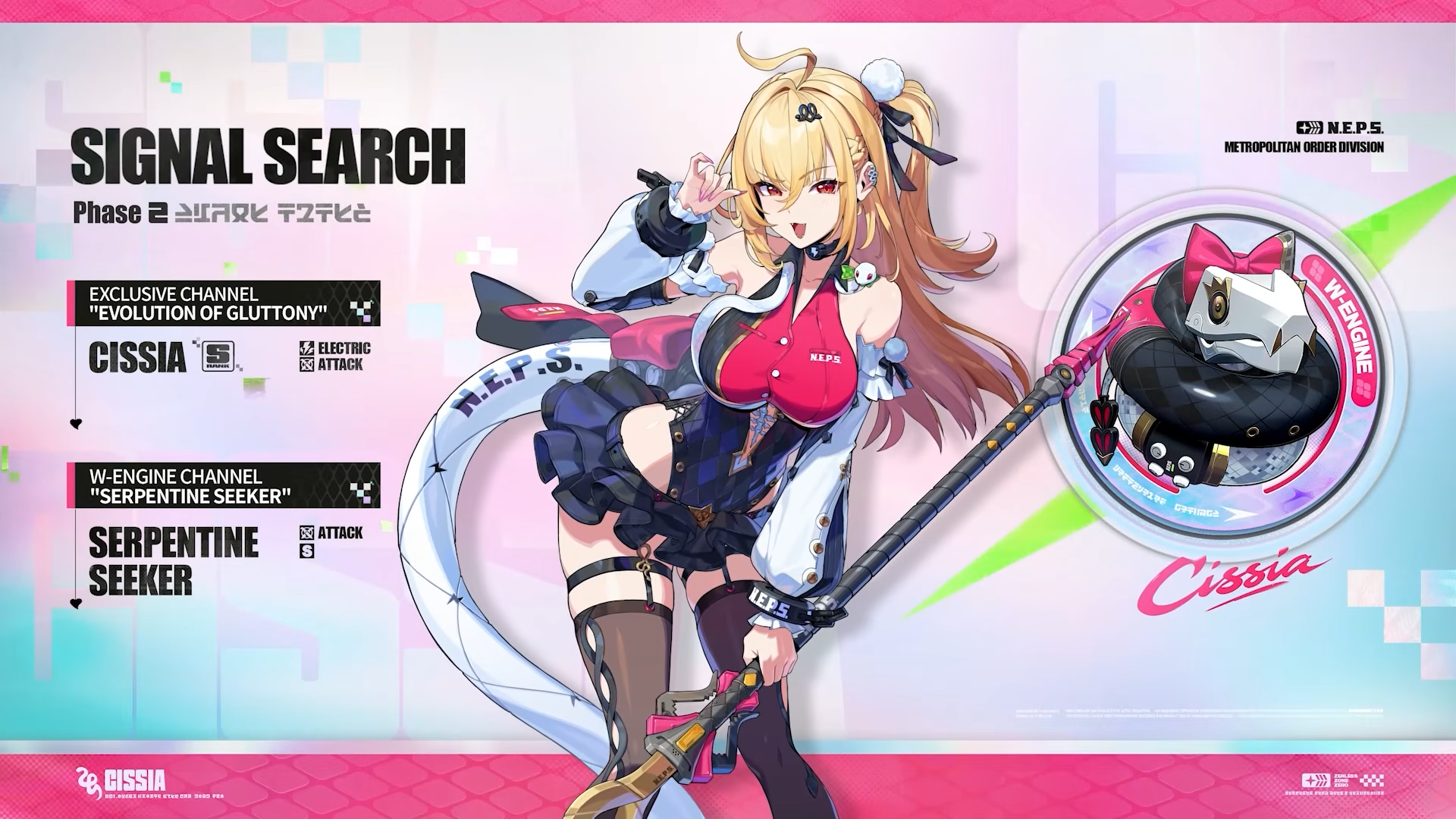 - Циссия (S-ранг) — агент специальности «Нападение» с атрибутом электро и заодно профильный специалист Службы общественной безопасности. Появится во второй половине патча.