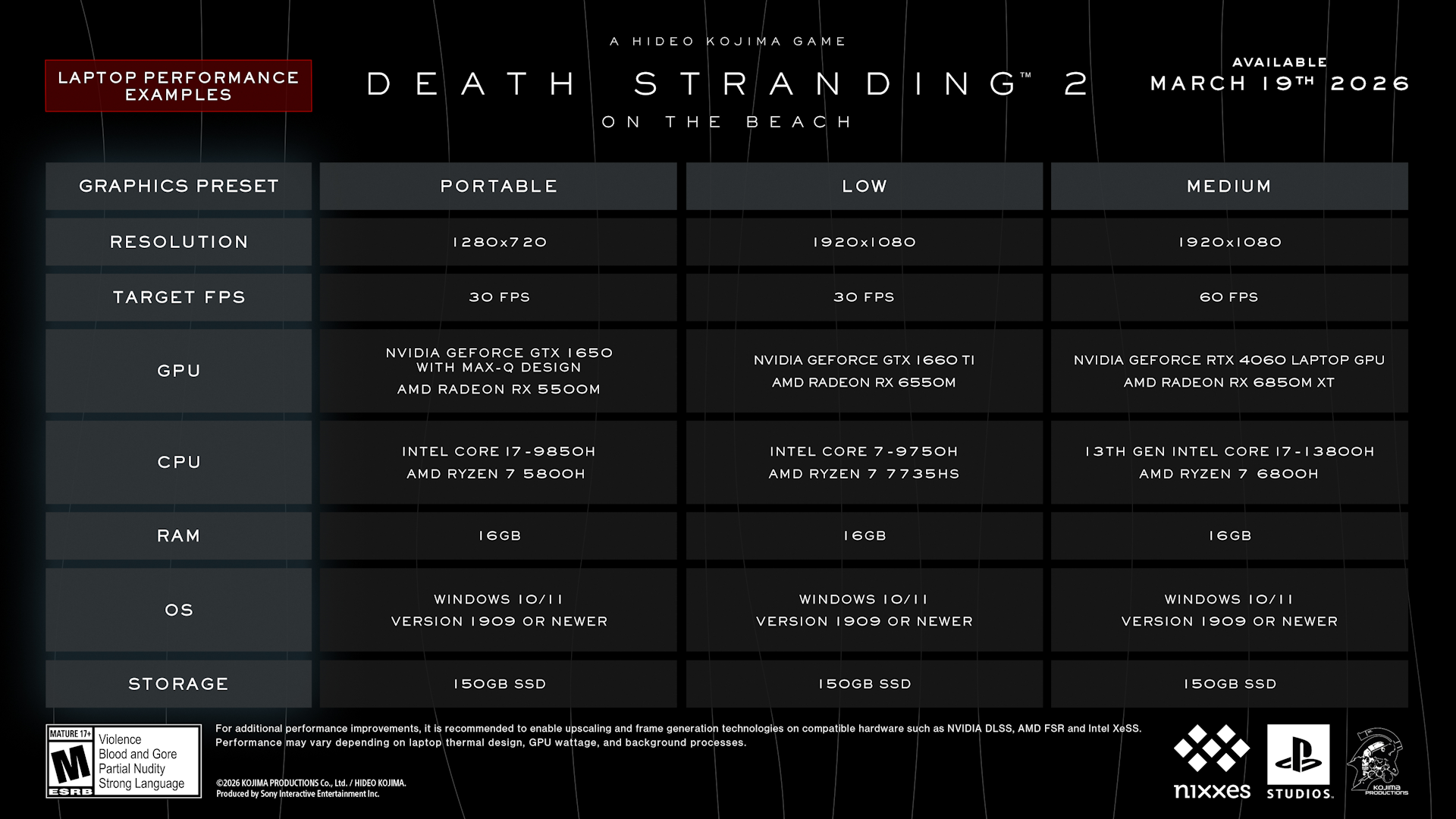 До релиза ПК-версии Death Stranding 2: On the Beach осталось всего ничего, а разработчики из Kojima Productions продолжают раскрывать технические особенности грядущего порта. В этот раз они представили отдельные системные требования для ноутбуков.