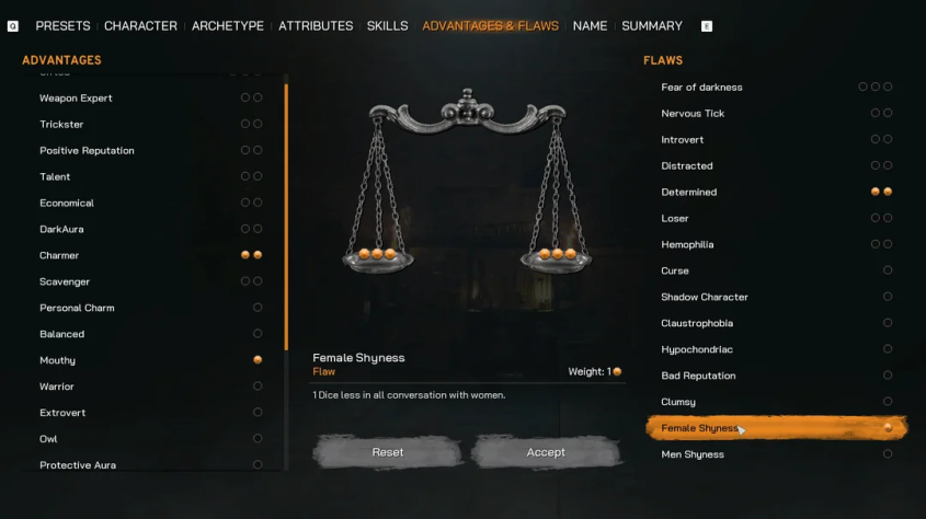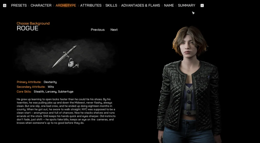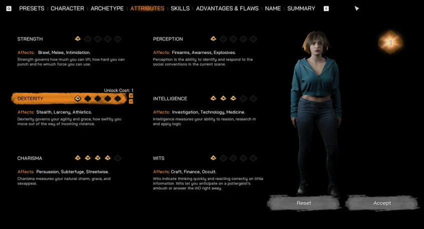 Так как это ранняя версия, интерфейс, визуальная составляющая и механики ещё могут поменяться до релиза. Тем не менее по одним этим скриншотам видно, что в отличие от Vampire: The Masquerade — Bloodlines 2, Deathwish является полноценной RPG. Для прокачки главного героя игра предложит 6 атрибутов с 18 навыками. В их числе: