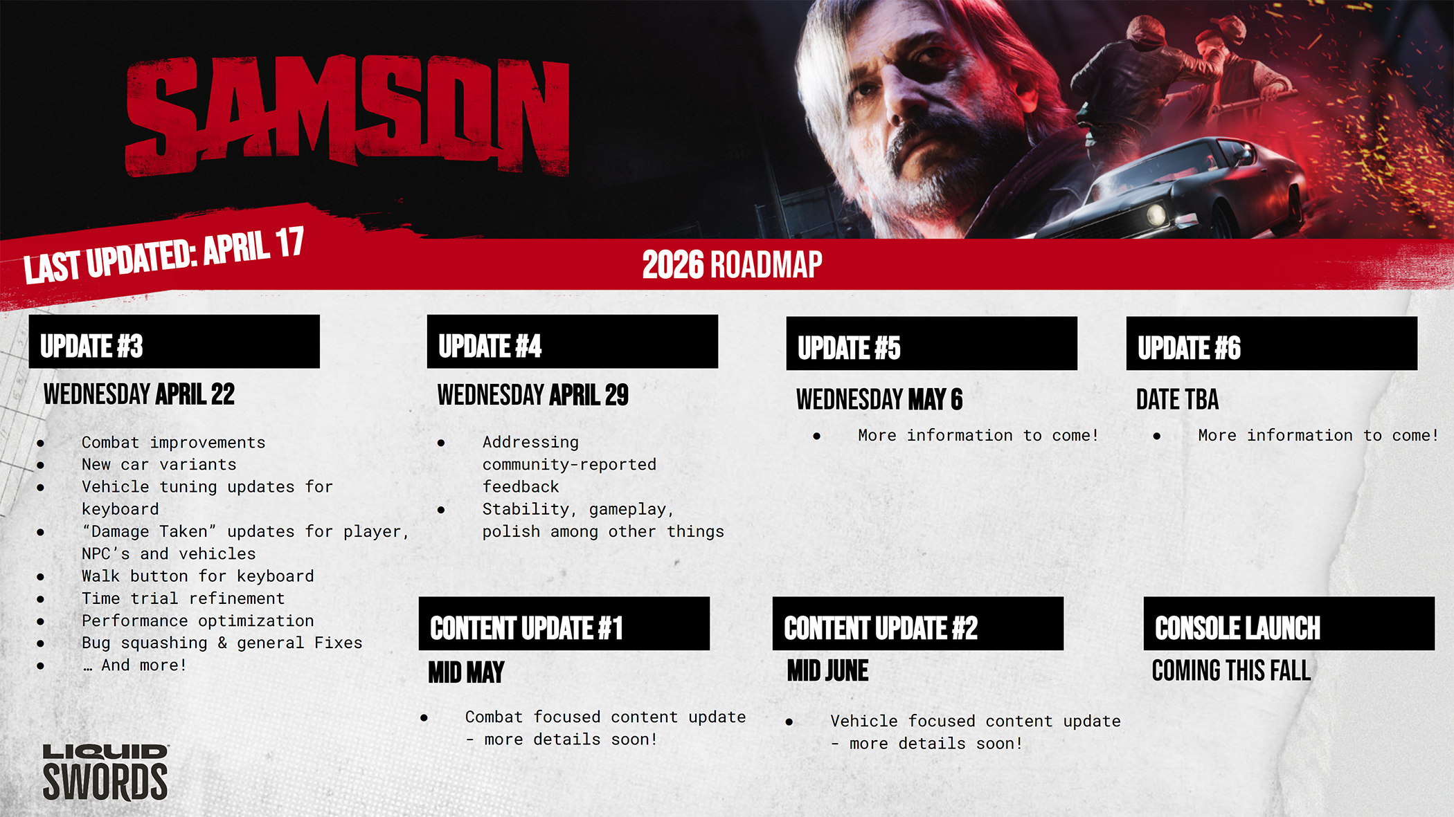 Команда Liquid Swords уже выпустила два патча для Samson, и останавливаться на этом не намерена. Всё же разработчики обещали постепенно улучшать игру по всем фронтам и наполнять её контентом. Чтобы не быть голословными, они поделились планом развития проекта на 2026 год.