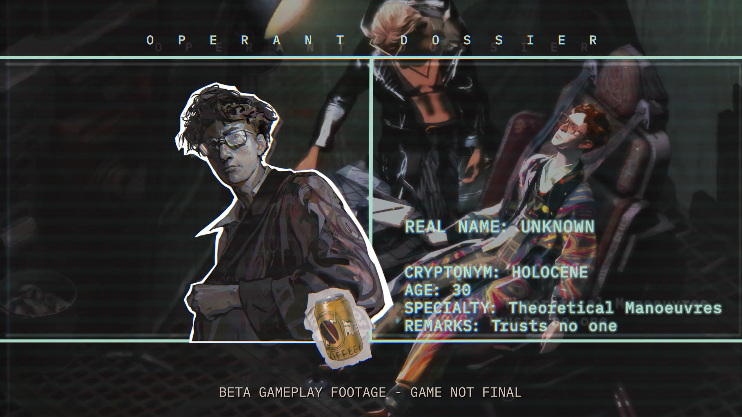 - Голоцен (30 лет, настоящее имя неизвестно) — заместитель Каскад и главный криптограф команды. Если нужно разгадать шифр, Голоцен поможет. У него есть теории абсолютно на любой счёт — вплоть до того, что конкурирующей разведкой заправляют коты. Ремарка: он никому не доверяет.
