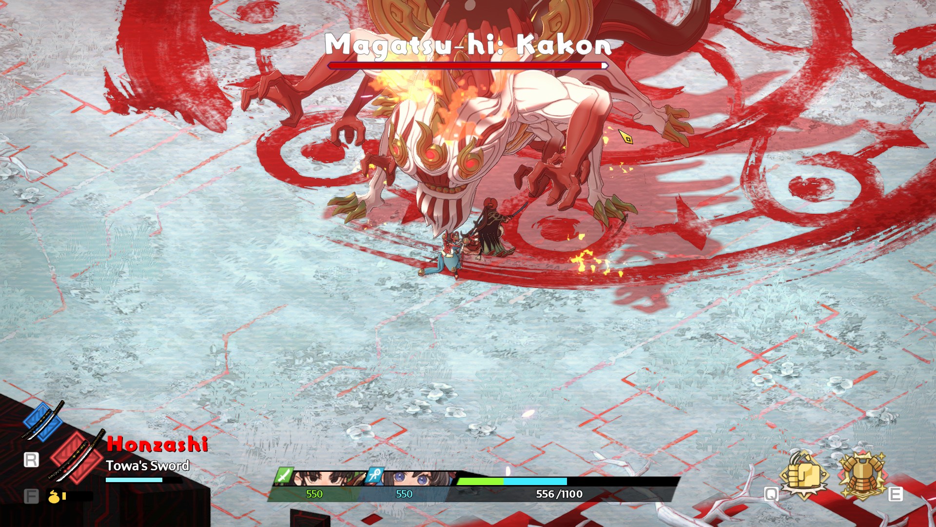 Ещё одна ключевая особенность Towa связана с тем, что мы управляем не одним, а парой героев. Перед каждым забегом нужно выбрать, кто из Детей молитвы будет выполнять роли Цуруги и Кагуры. Первый — это «танк», основной нападающий. А Кагура обеспечивает магическую поддержку — семенит за «танком» и периодически кастует заклинания. Мы их сами активируем и при желании можем включить прямое управление магом, но в «сингле» это превращается в мороку.