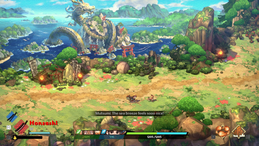 С другой стороны, кто-то скажет, что так оно и задумано для создания медитативной атмосферы, присущей многим японским играм. Да и национальный колорит нужно же передать при помощи шикарных пейзажей с обязательным участием сакуры. В общем, дело вкуса, но замечу, что в Hades таких вопросов не возникало.