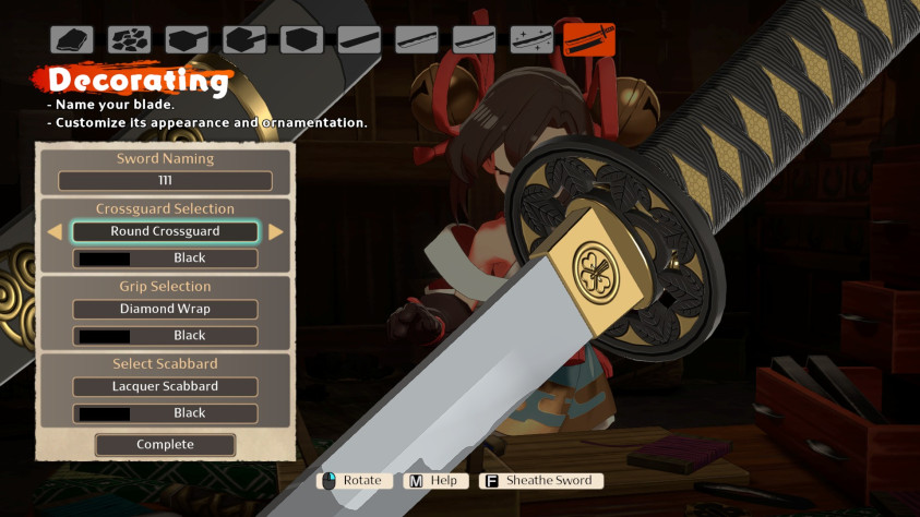Так вот, ковка новых мечей — а это очень важно для прохождения — реализована в крайне интересном формате и отчасти напоминает то, что мы видели в Kingdom Come: Deliverance II. С помощью мини-игр мы должны лично менять форму лезвия, разжигать огонь и правильно бить молотком по раскалённому металлу. Здесь больше 10 этапов ковки — вплоть до того, что нужно выбрать имя меча, раскрасить его и в конце заточить. И практически всё это влияет на характеристики клинков. Здорово, но опять же очень медленно. Да, есть вариант довериться кузнецу, который сделает практически всё за нас, но игра считает его опциональным — нужно ещё догадаться, что такое возможно.