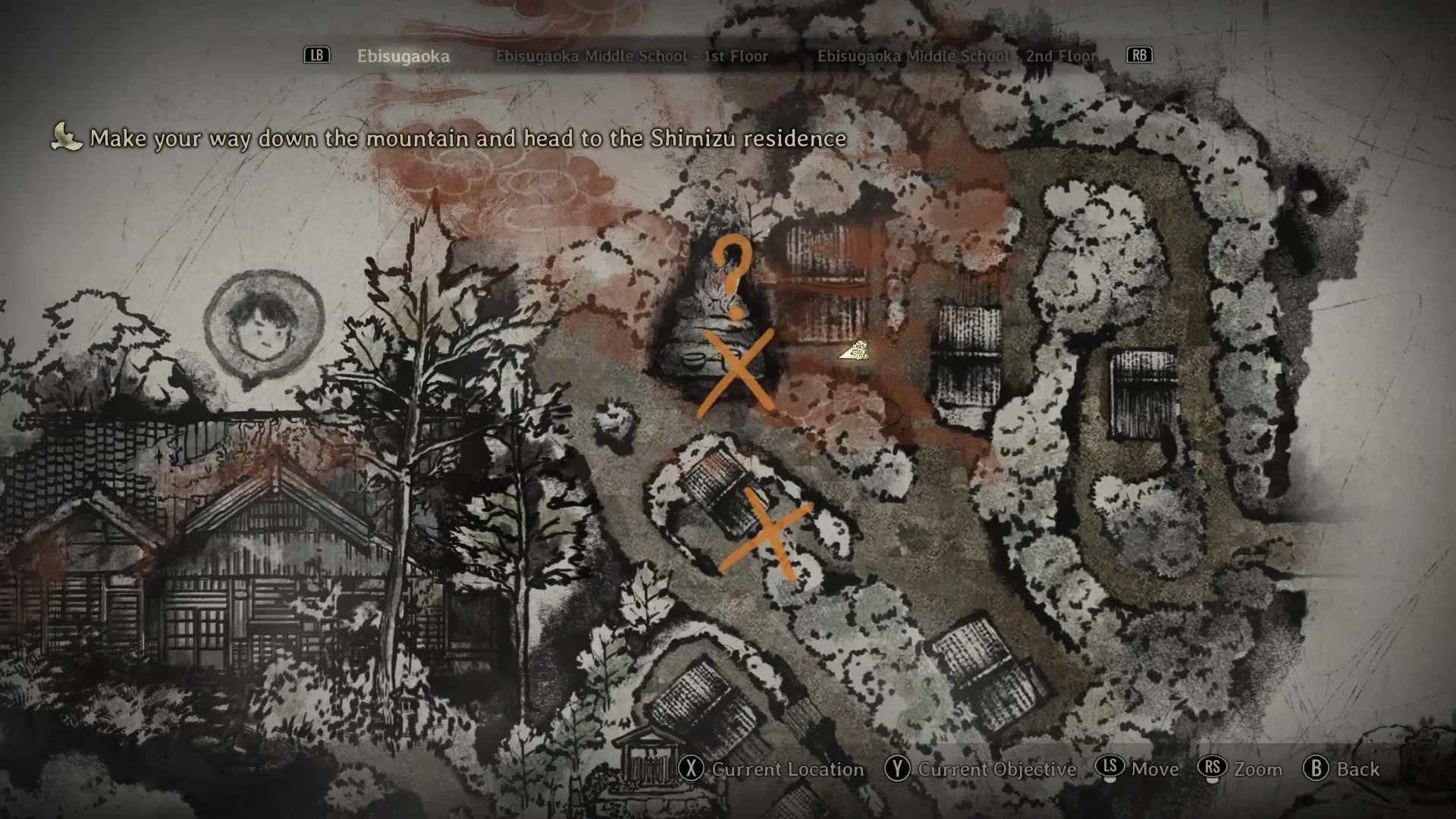 Подношение — сломанные японские сандалии гэта, лежащие на противоположной стороне разрушенного моста. Важно не заходить в школу, иначе доступ к статуе будет утрачен до следующего прохождения.