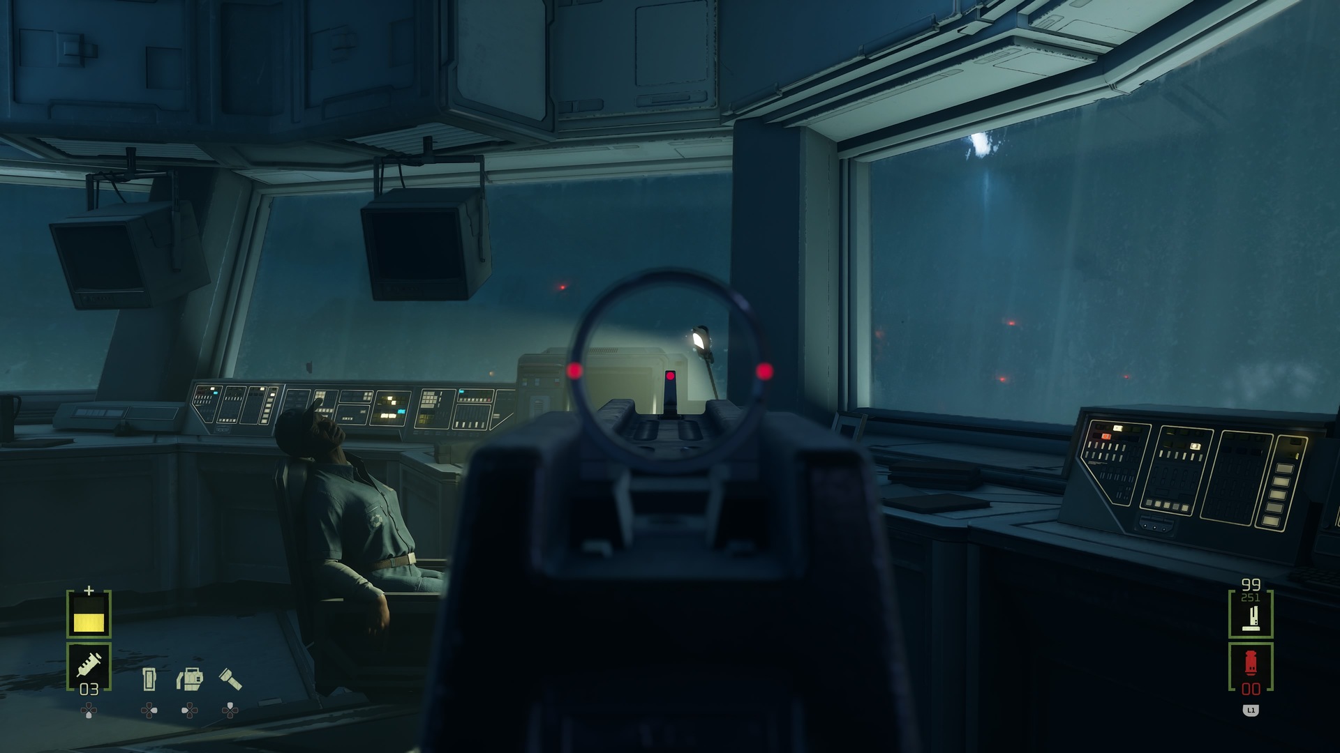 Да, враги могут вылезать из вентиляционных шахт и буквально валиться с потолка. Однако в остальном они способны лишь на сближение с протагонисткой, а любое препятствие для них чревато не только ступором, но и причудливыми багами. Ещё далеко не всех порадует бесконечный респаун противников — он происходит, например, если вы пытаетесь открыть запертую дверь или долго копаетесь с головоломкой. Видов врагов здесь всего два: ксеноморфы и лицехваты, которых нужно отстреливать с расстояния либо сбрасывать с себя в QTE. Босс встретится только один, и сражение с ним крайне скучное.