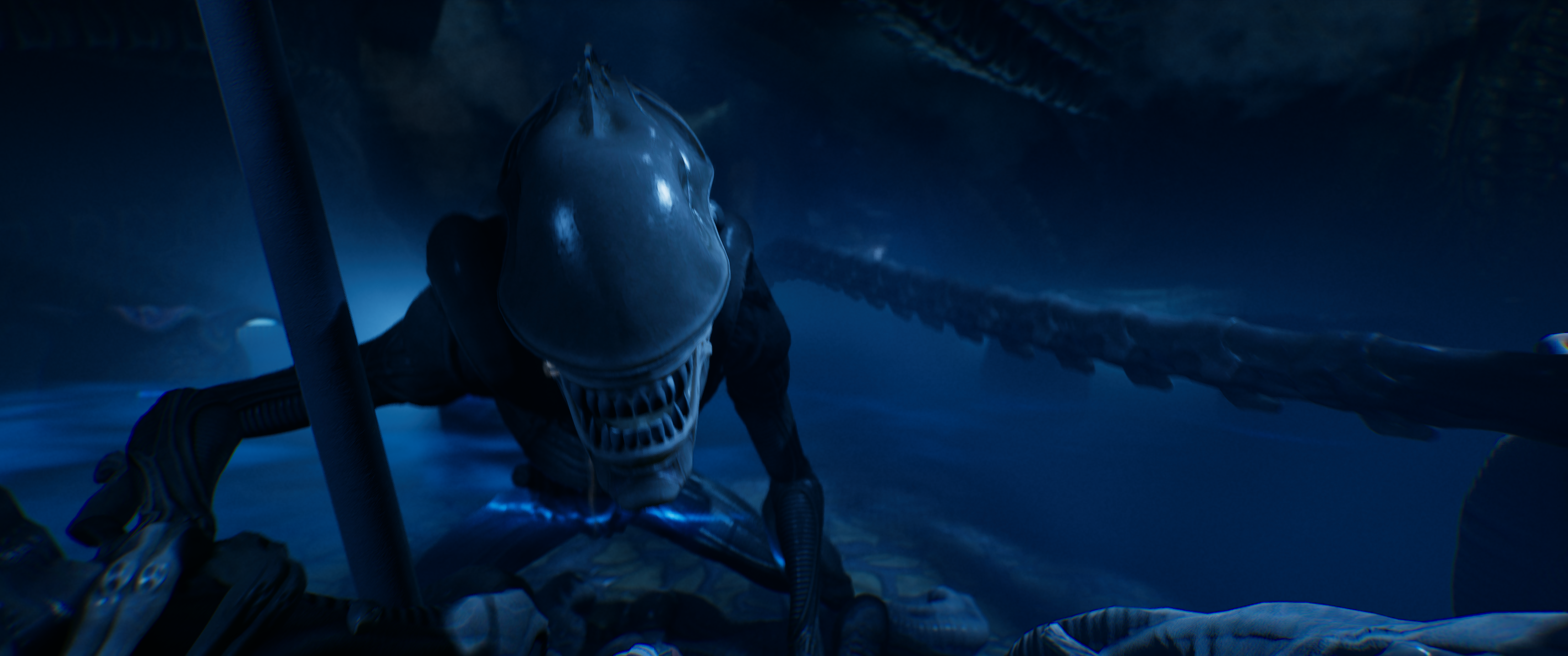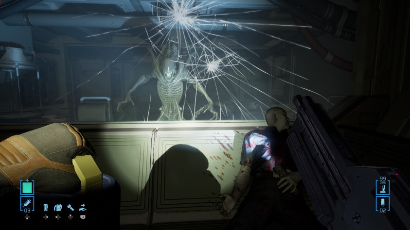 Локации сделаны так, что ксеноморфы тихо перемещаются по потолку, вентиляциям и стенам, вынуждая игрока пользоваться детектором движений. При таком раскладе, что ещё делать ксеноморфам, кроме сближения с протагонисткой?