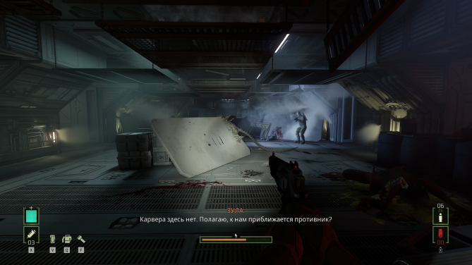 С другой — скажем спасибо VR-наследию за отсутствие разрушаемости и низкое качество некоторых текстур. Ещё иногда досаждают баги: то ксеноморф застрянет в потолке, не позволяя Зуле покинуть локацию; то музыка не перестанет играть. Субтитры периодически обрезаются, так что готовьтесь полагаться на слух и знание английского. Один раз заглючила даже ачивка, выпав просто так, на ровном месте.