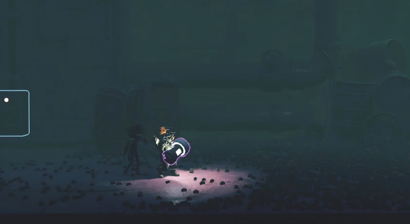 Разобравшись с леденцовыми долгоносиками, продолжите движение, пока не доберётесь до другой области, где из вентиляционного отверстия в стене, похоже, вывалятся конфеты и тело. Чтобы избежать встречи с жуками, проберитесь через вентиляционное отверстие, используя решётку у задней стены. Оказавшись на другой стороне, поверните рычаг, чтобы включить свет и распугать жуков, после чего откроется люк.