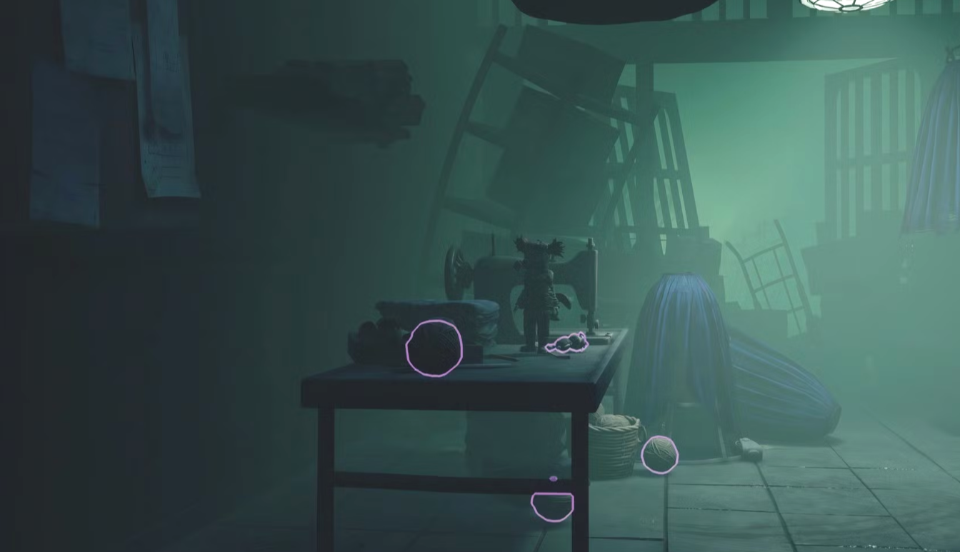 В следующем коридоре, где расположен портрет Начальницы, нужно пригнуться и под дверью пройти в комнату с левой стороны. В левой части помещения расположен стол со швейной машинкой, а рядом с ним — пятая коллекционная кукла, которая является последним предметом второй главы. Возьмите куклу и идите через коридор в комнату с большим зеркалом, которое перенесёт Малого и Одну в третью главу «Карнавал». Завершаем прохождение второй главы Little Nightmares 3 со всеми коллекционными предметами на сайте StopGame.Ru.