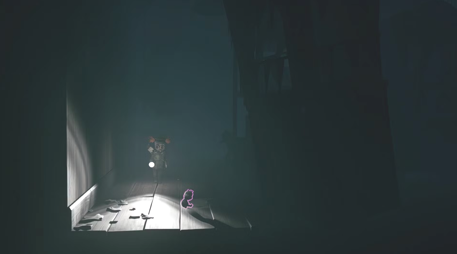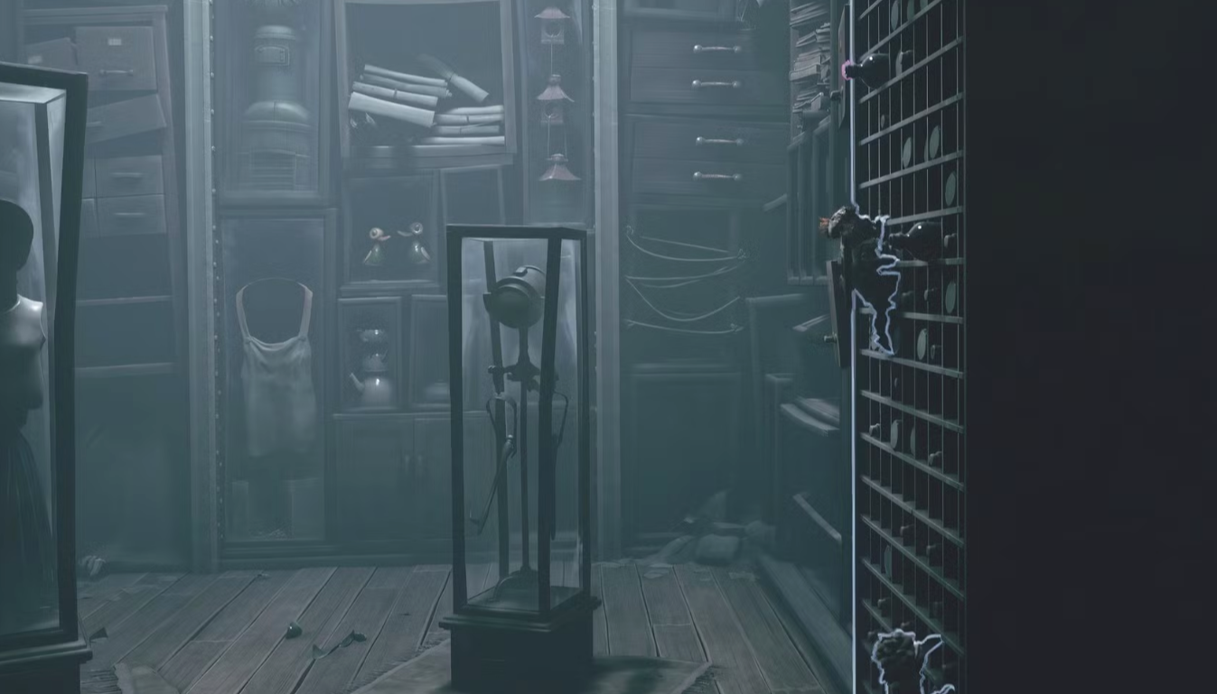 Проснувшись в стартовой зеркальной комнате в начале третьей главы, вы увидите маленькое существо, которое покажется вам знакомым, если вы играли в предыдущие игры серии Little Nightmares. Следуйте за номом в соседнюю комнату и ускорьтесь, чтобы дотянуться до дверной ручки. В этом помещении вы вновь увидите бегущего нома, который запрыгнет в ящик, на который падают солнечные лучи. Подойдите и откройте ящик, чтобы ном выскочил и побежал дальше. Главная цель — следовать за номом. После того как он покинет ящик, вы сможете найти его под подушкой стула с правой стороны. Затем он, наконец, направится за стеклянную бутылку на полке у задней стены. Поскольку до нее вам не дотянуться, Малому придётся выпустить стрелу, чтобы разбить бутылку и напугать нома, который, побежав, ненароком заденет лестницу, и вы сможете по ней подняться.