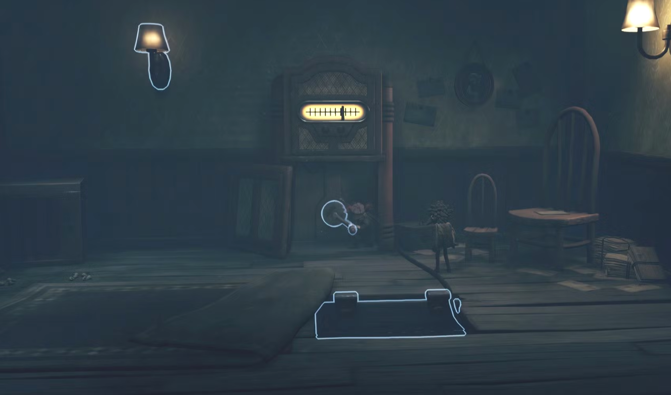 Попав в следующий дом, вы окажетесь в комнате со старым радио и несколькими разрозненными предметами мебели. Если попытаетесь повернуть рукоятку на радиоприёмнике, ничего не произойдёт, так как устройство отключено от питания. Поэтому, чтобы всё заработало, вам нужно найти батарейку, которую увидите на полке в комнате с правой стороны.