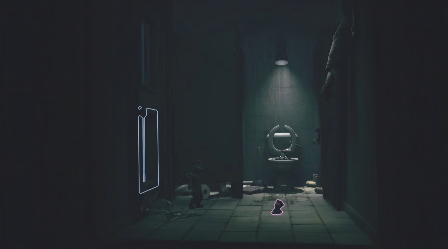 Продолжите движение по намеченному пути, пока не окажетесь в коридоре. В комнате с левой стороны можно найти пустую розетку. Такую же, как и в предыдущих главах. В конце коридора с правой стороны вы увидите нома и разбивающееся стекло. Разбейте последнее, чтобы найти небольшую ванную комнату и расположенную на полу первую коллекционную куклу на Карнавале. Продолжаем прохождение третьей главы Little Nightmares 3 со всеми коллекционными предметами на сайте StopGame.Ru.