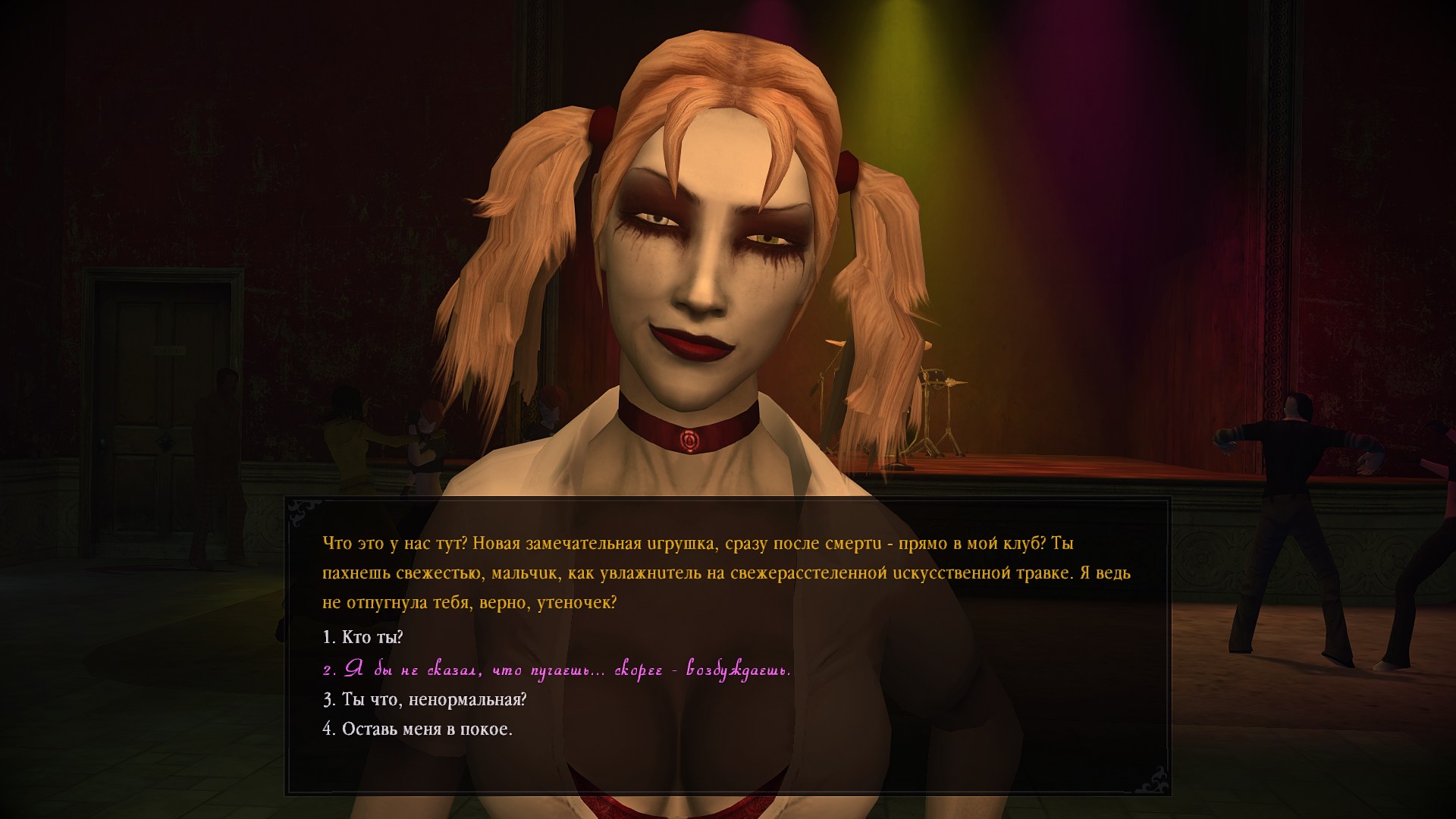 Хотя, стоит заметить, что первая часть тоже не так явно обозначала малкавианов. С ГГ-малком всё понятно, там прямо выпирающая шиза. Но, например, ту же Жанетт по незнанке можно легко принять за Тореадора, а Терезу за Вентру. Так что не всё так однозначно.