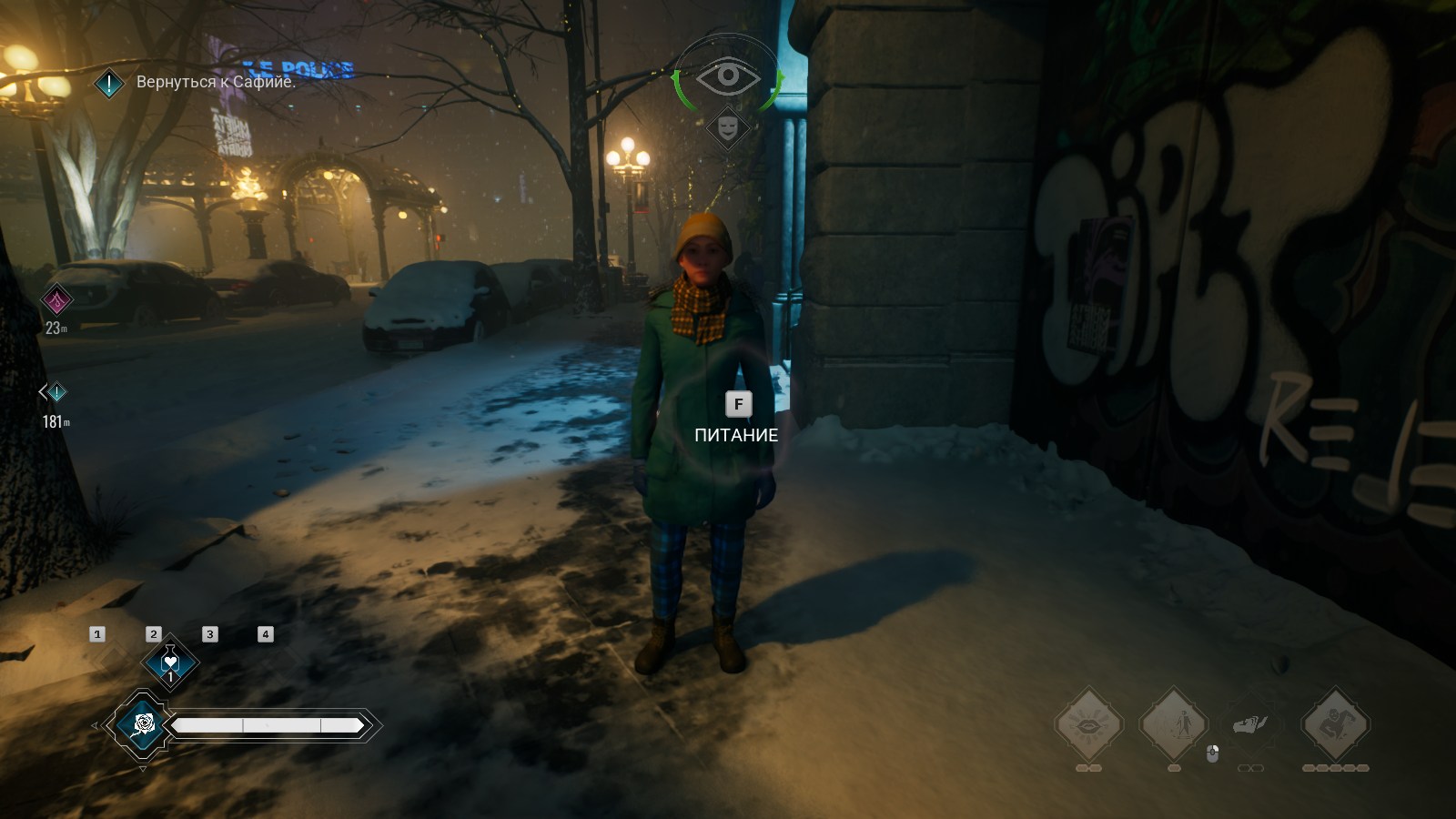 С другой стороны, я понимаю, что авторы хотят, чтобы мы прочувствовали, каково это — быть вампиром в большом городе. Начать с того, что заснеженный, полный людей Сиэтл действительно производит более сильное впечатление, чем районы «города Ангелов» на несколько домов и пару NPC, которые отчаянно пытаются имитировать жизнь в оригинале. Здесь есть похожие мотивы и даже места, но ночной клуб и огромный готический дом с горгульями выглядят ярче.