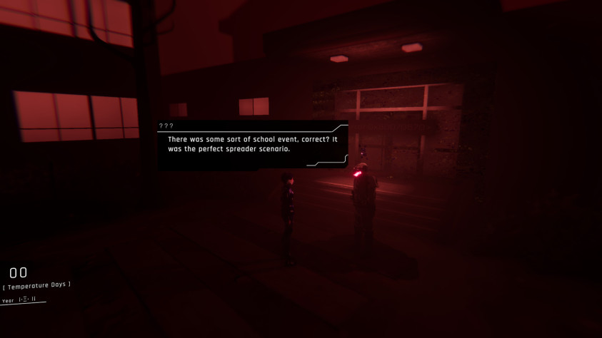 Самое интересное происходит чуть позже, когда нам позволяют переключаться между двумя временными отрезками. В одном ещё ничего не произошло: школьники обсуждают проблемы с учёбой, решают судьбу статуи в одном из кабинетов, собираются в творческие кружки и готовятся к крупному мероприятию. В другом отрезке всё плохо — детского смеха в коридорах давно не слышно, и прогуливаются по ним лишь солдаты в защитных костюмах. Комнаты и кабинеты, недоступные в одном сегменте, оказываются открыты в другом, и постепенно мы выстраиваем в голове картину произошедшего, пускай это и лёгкие наброски.