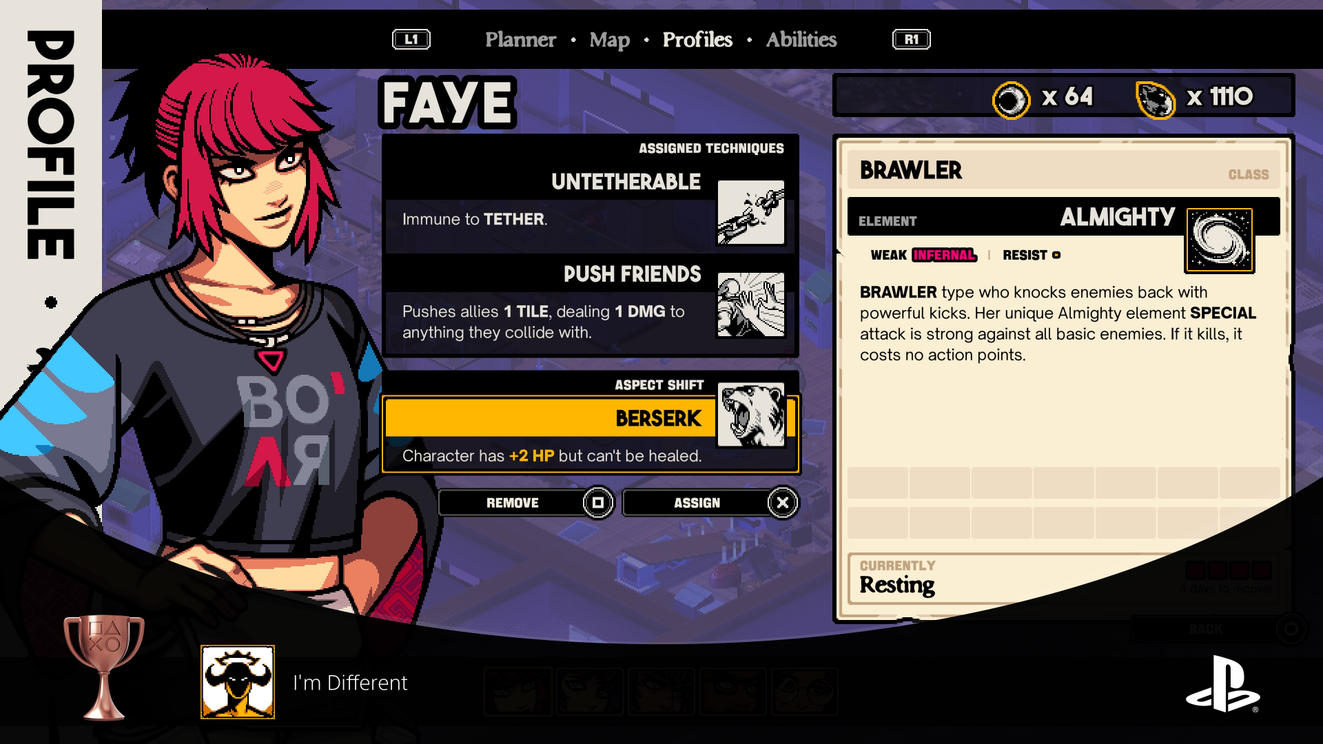 То есть сами персонажи никак не прокачиваются. Здесь нет уровней, нет очков опыта, нет древа навыков, уникального для каждого героя, — если не заходить в специальное меню, где «вешаешь» бойцам бонусы, до конца игры они останутся такими же, какими были при первой встрече. Среди «пассивок» есть полезные модификаторы — с одним персонаж будет отбивать дальнобойные атаки, с другим обретёт неуязвимость к определённым атакам, с третьим получит две дополнительные единицы здоровья, но лечить его будет нельзя. Бонусов несколько десятков, и каждый из них может одновременно носить лишь один член отряда.