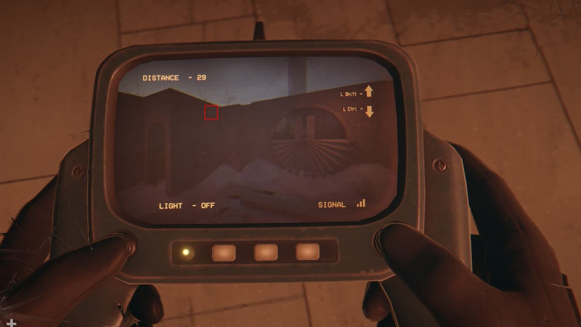 Продолжая движение, следуйте через комнату, где впервые появилась Тамара Васильевна, и где вы нашли дробовик. Далее поверните в правую сторону: вы увидите закрытые ворота, ведущие на следующую открытую площадку. Пускайте дрона, летите над воротами и ищите слева от здания, на стене, очередной QR-код. Отсканировав его, получите изображение в галерею.