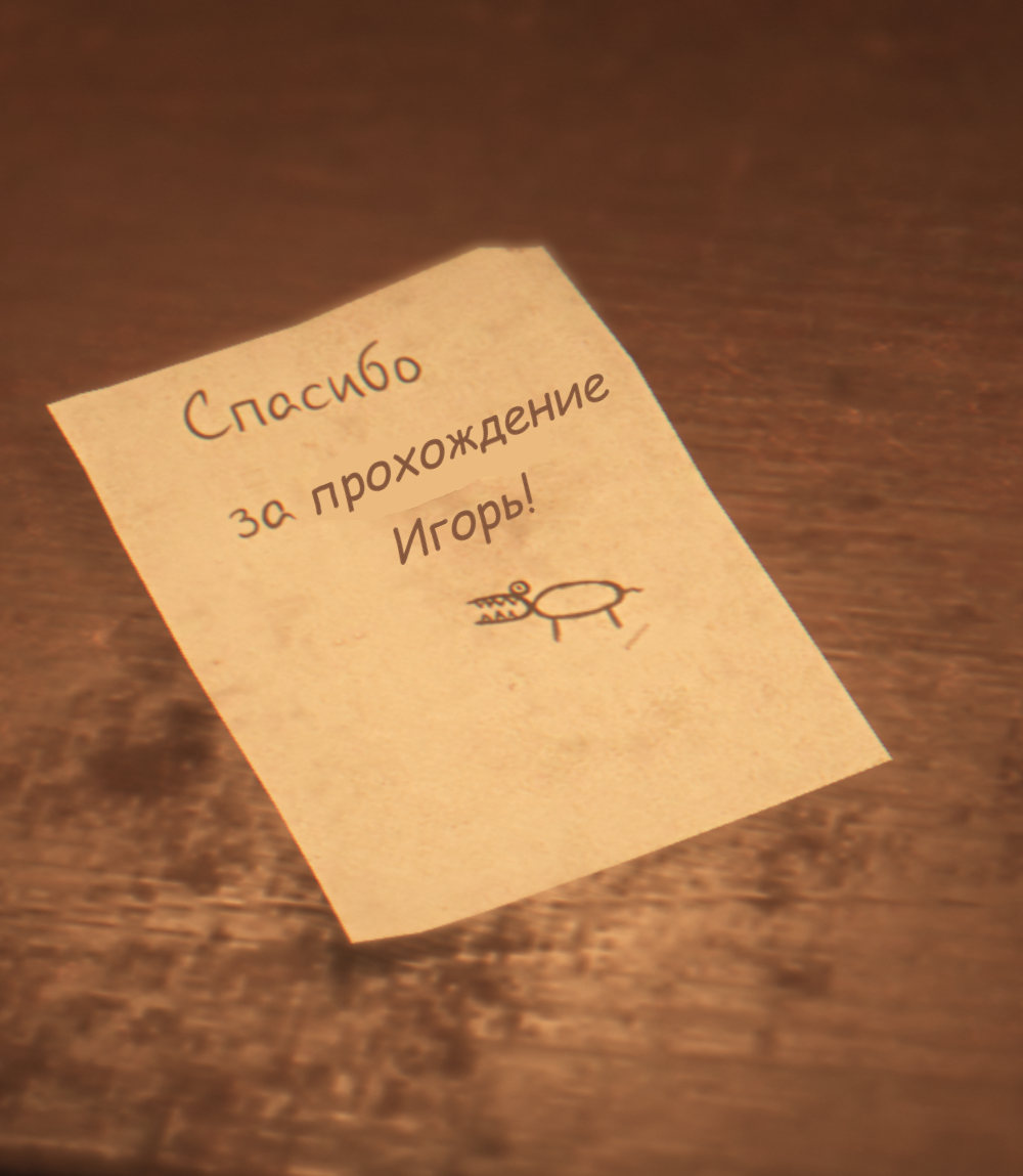 На нижнем уровне идите в левую сторону. Направляйтесь по коридору до двери по правой стороне и пройдите внутрь. На столе лежит записка с намёком на то, что за шкафом есть сломанная вентиляция. Ничего двигать не придётся, да и не сможет Игнат. Вместо этого осмотрите стоящий в углу шкаф, откройте его нижние дверцы и обнаружите ту самую вентиляцию. Проползите вперёд до самого конца тоннеля; вскоре автоматически начнётся кат-сцена.