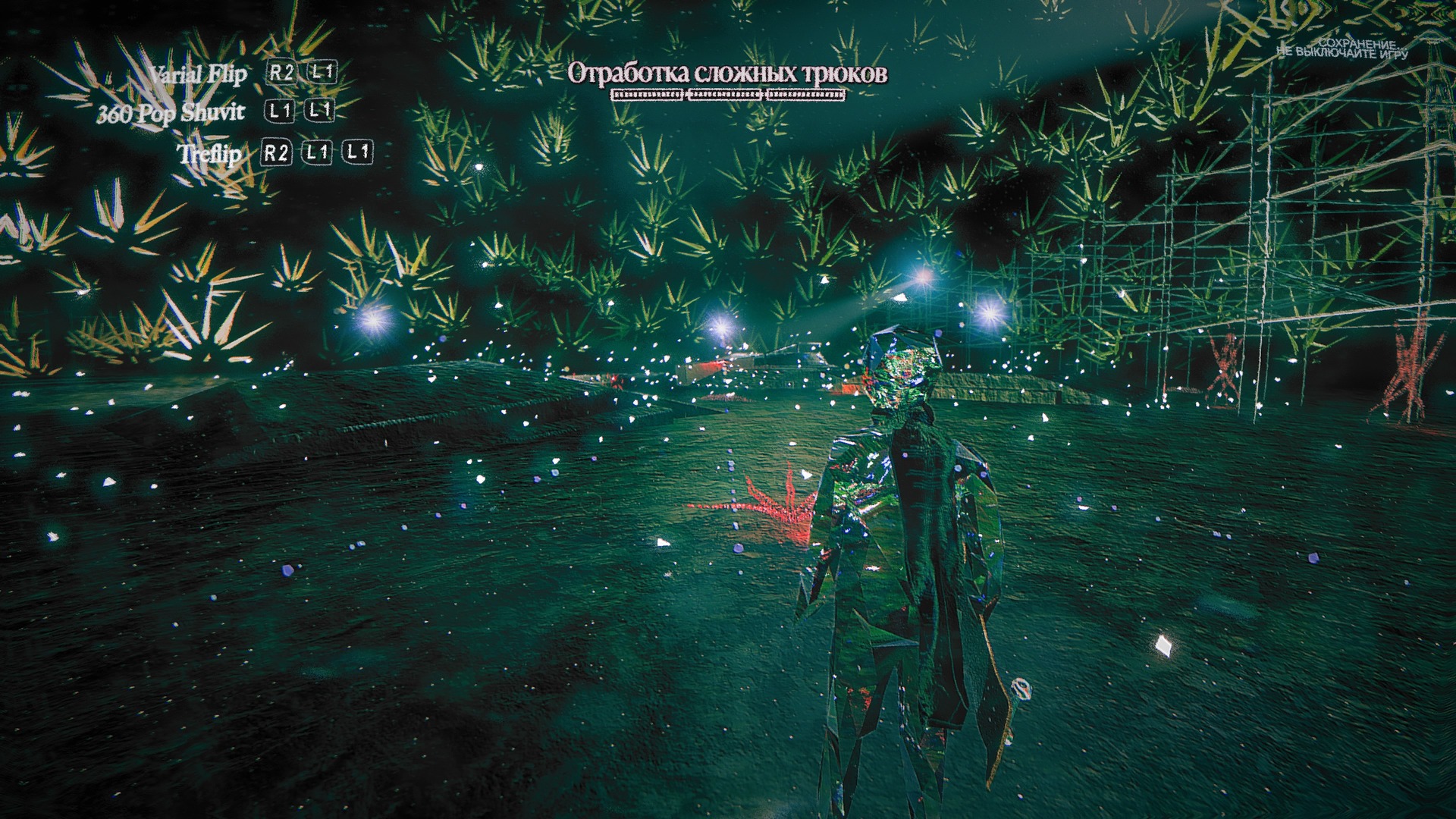 Иносказательность и образность (которыми также наполнены неозвученные комментарии рассказчика в субтитрах) удачно сочетаются с игровым процессом, менее вычурным, чем повествование. Скейтборд нам выдают в начале игры, постепенно обучая новым трюкам, которые выполнять легче, чем в других аркадных симуляторах. Одной кнопкой мы встаём на доску или слезаем с неё, другой ускоряемся, третьей тормозим, а четвёртой совершаем прыжок (олли). Бамперы и триггеры на геймпаде отвечают за чуть более сложные техники — нужно нажимать и на них, и на кнопку прыжка, чтобы исполнять всякие кикфлипы, хилфлипы, поп-шовиты и так далее.