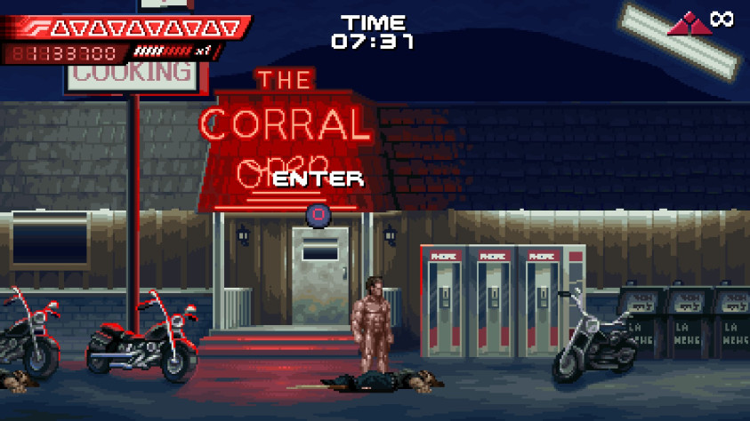 В любом случае нужно учитывать, что перед нами не столько полноценная игра, сколько этакий заплыв по волнам ностальгии, где в первую очередь важны не сложность и рефлексы, а эмоции и воспоминания. И авторы сознательно снизили порог вхождения, чтобы игра понравилась всем, — они сами признают, что самый высокий уровень сложности в Terminator 2D соответствует обычной сложности в их прошлых работах.