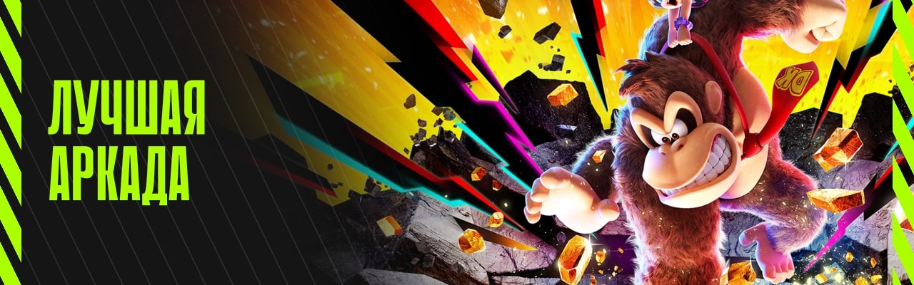 Аудитория же посчитала лучшей аркадой Donkey Kong Bananza — похоже, Switch 2 популярна и в наших краях! Внутренние студии Nintendo не занимались играми о Донки Конге аж с 2004 года, и вернуть ему былую славу в Bananza решили те же люди, которые создали Super Mario Odyssey. Как и ожидалось, у них вновь получился один из лучших трёхмерных платформеров в истории жанра — он не только такой же яркий и весёлый, как «Одиссея», но ещё и технологически продвинутый. Мощность Switch 2 позволила авторам добавить в игру много разрушаемых объектов, и в Bananza крушить и ломать что-то нужно на каждом шагу.
