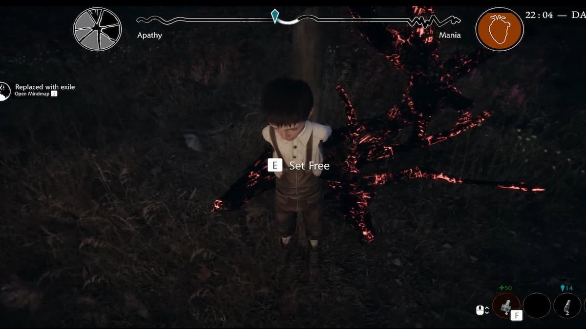 Спустившись на первый уровень, откройте дверь с красным символом. Внутри найдёте костюм ворона — наденьте его, пройдите мимо человека в бинтах и откройте первую дверь справа. Возьмите лом с большого колеса, поверните за угол вправо, вскройте им окно и выберитесь наружу. На улице поговорите с патрульным, выбрав реплику удивления или раздражения (Мания).