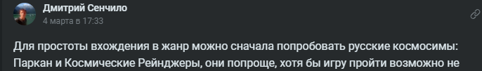 Извините, а кто эти люди, которые назовут, допустим, Космических рейджеров или The Outer Worlds космосимами?