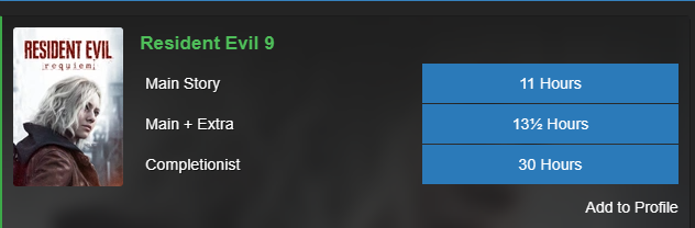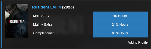 Прошёл на классической сложности за ~17 часов, заглядывая в каждый уголок, собрав все документы, все ресурсы, улучшения, почти всех енотов (упустил только одного, который в сегменте за прикрытие Грейс из снайперки) и при этом умирал не то чтобы много (за Леона вообще раза 2-3 всего), да и назад никогда сильно не откатывался. Думаю, за большинство часов стоит благодарить неспешный темп прохождения, стелс или попытки стелса мимо каждого зомби, которого возможно обойти + кнопка спринта у меня только на праздники, а так я потихоньку хожу по коридорам неспешным шагом, пропитываясь атмосферой и вслушиваясь в звуки за стенкой и за углом.