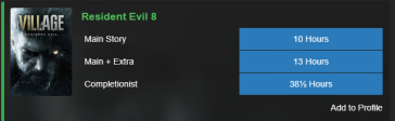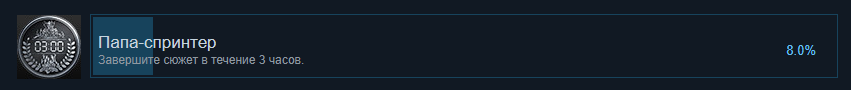 Поэтому ачивка за "пройдите игру меньше чем за 4 часа" есть в стиме у... ЦЕЛЫХ 13% ИГРОКОВ! А в ре8 у восьми! Ох уж эти "частые" 5% разницы.