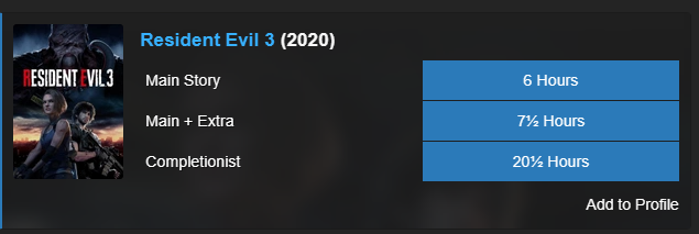 У ре8 мейка есть ачивка "пройдите игру за 3 часа".