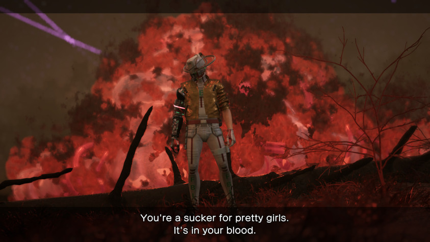Так что и странности в сюжете считаешь нормой — если что-то происходит, значит, так и должно быть. Не задаёшься вопросом о том, как дед главного героя «увековечил» себя на куртке Ромео и может с ним разговаривать, — просто Суде так захотелось, он вдохновлялся «Назад в будущее» и «Риком и Морти», вот и сделал свою версию чудаковатого учёного. Не чешешь в затылке, когда вдруг тебе читают лекцию о разнице между цветками лотоса и водяными лилиями, один персонаж упоминает монстра из североамериканских сказок, другой вдруг хвалит книгу «Сферландия» полувековой давности. Просто впитываешь всё это, узнаёшь что-то новое, что-то гуглишь и поражаешься тому, как колодец идей Суды до сих пор не иссяк.