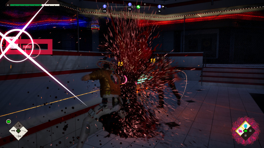 Боёвка зрелищная и кровавая — настолько, что из-за количества брызг крови на экране порой перестаёшь видеть персонажа. Жаль, видов врагов не так уж много, а монстры, которые кажутся мини-боссами, впоследствии становятся рядовыми противниками в комнатах-аренах, где персонажа иногда запирают по сюжету. Внести разнообразие попытались вирусами — уже знакомые мобы на поздних уровнях могут временно заражать Ромео, блокируя возможность перекатываться или снижая защиту. Но этого недостаточно, а неспособность протагониста парировать атаки или хотя бы ставить блок всё чаще раздражает, когда в узком коридоре тебя окружает десяток оппонентов.