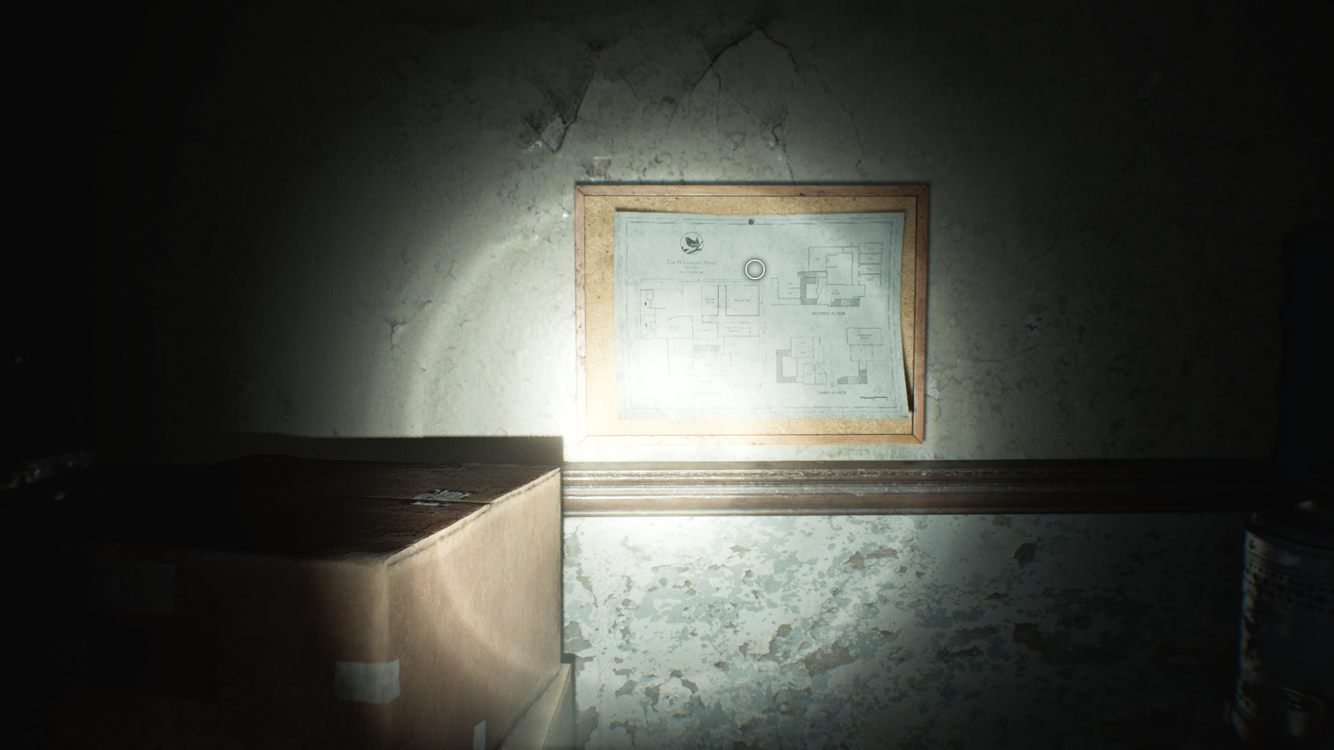 Перед тем как уйти, посмотрите вверх и вправо от стойки — на стене висит план отеля «Рэнвуд». В Resident Evil Requiem вам часто предстоит бывать в незнакомых местах, и подобные планы помогут лучше ориентироваться и понимать, что ещё можно исследовать. Они обновляют вашу карту.