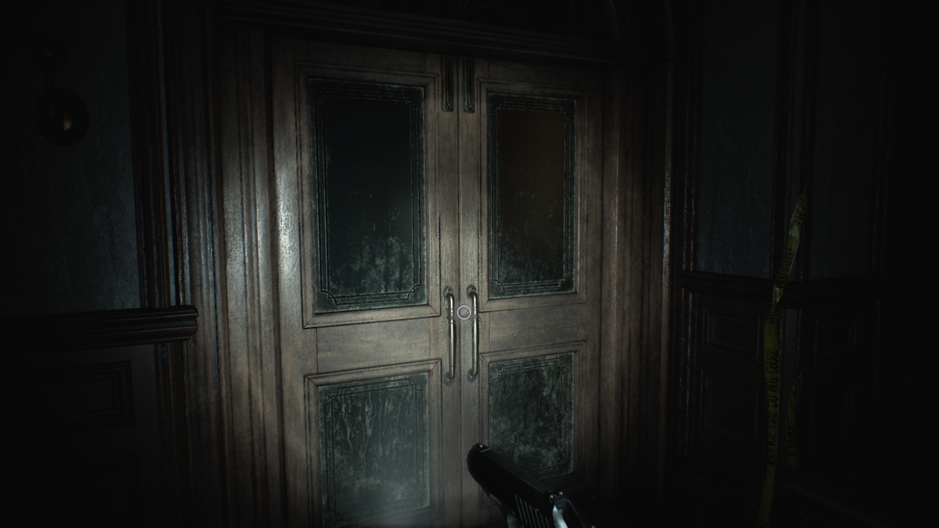 Оживший полицейский целится в Грейс из дробовика. Удерживайте клавишу взаимодействия F, чтобы постепенно освободиться, одновременно двигаясь влево и вправо, чтобы ствол дробовика не был направлен на Грейс! Когда услышите щелчок, убедитесь, что находитесь сбоку — тогда коп промахнётся. На перезарядку и новый выстрел у него уходит около 10 секунд. Если сразу же зажали F, враг успеет совершить лишь один выстрел.