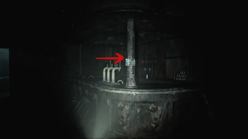 Найдите дверь справа от барной стойки и взаимодействуйте с ней. Откроется инвентарь — выберите старый ключ, чтобы открыть замок. В отличие от некоторых прошлых игр серии, после того как предмет выполняет своё назначение, он автоматически удаляется из инвентаря.
