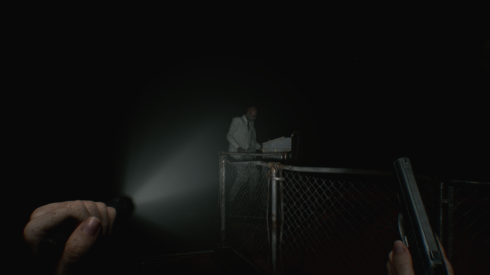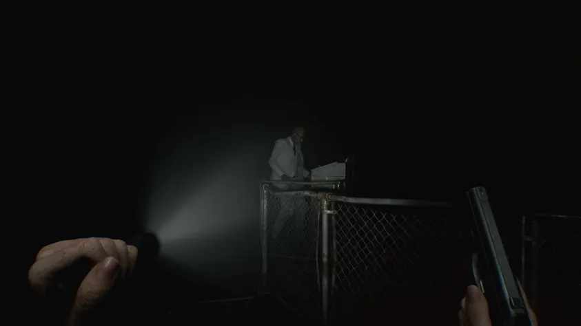 Теперь, когда у вас есть торцевой ключ, вернитесь в комнату с печью и поверните влево, в помещение с бассейном для сбора крови. У распределителя питания, к которому вам нужно получить доступ, стоит новый заражённый в белом костюме. Рекомендуем подкрасться сзади и атаковать его гемолитическим инъектором, чтобы тот не побеспокоил вас позже. По возможности избегайте использования оружия, чтобы Девочка вас не услышала и не прибежала, так как комната слишком мала, а освещения ещё в ней нет. В качестве альтернативы, оставьте пока что свет в комнате с печью, чтобы у вас было безопасное пространство.