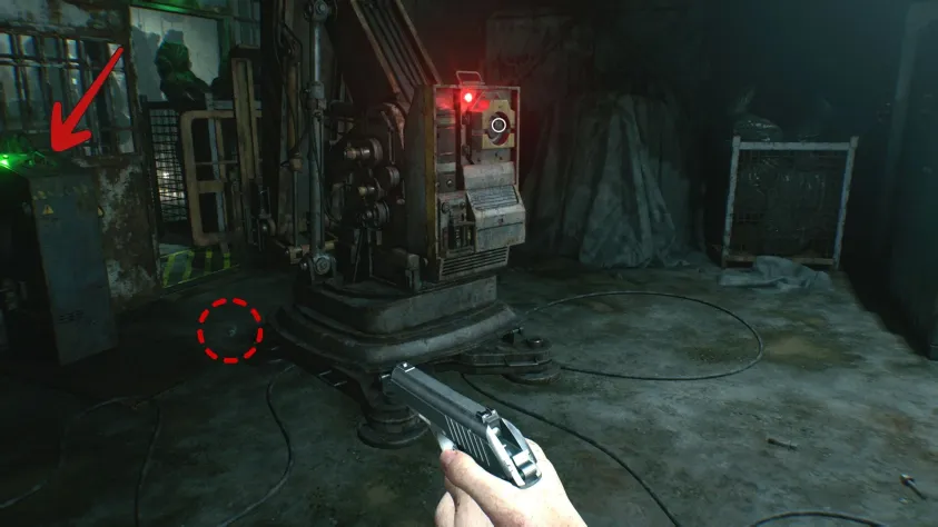 Теперь, когда у вас есть третий соединительный штекер, пора вернуться и забрать два остальных. Пройдите обратно через мастерскую и вентиляционный туннель к месту, где стоял второй погрузчик возле комнаты досмотра. Как и в случае с бассейном для сбора крови, если вы не уничтожили заражённого в костюме при помощи гемолитического шприца, он, скорее всего, тоже превратится в пузыреголового. К сожалению, в этой комнате вы также можете услышать звон цепей Девочки, которая замерла над вами и ждёт, когда вы выключите свет.