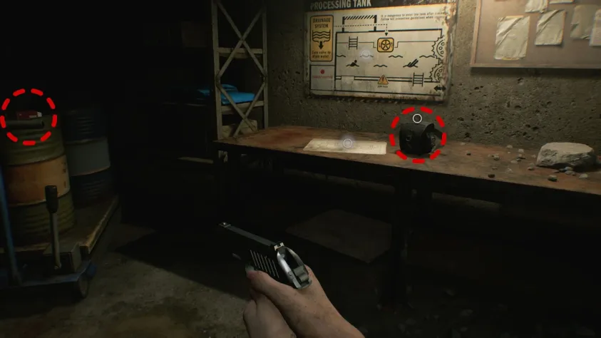 Теперь вы можете использовать его, чтобы активировать ближайший и предыдущий погрузчики. Взаимодействуйте с ближайшим погрузчиком, чтобы попасть в комнату за ним. На столе лежит набедренная сумка. Вы также сможете получить схему подвала медицинского центра, патроны для пистолета и изучить план помещений зоны переработки, чтобы узнать, что на другой стороне находится клапан для слива воды.