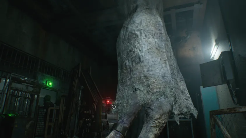 Пройдите по недавно открытому коридору мимо трупа у стены, в большую комнату, ведущую в зону досмотра. Пригнитесь, поскольку чуть дальше, около погрузчика, шаркает заражённый в костюме. Когда заражённый пройдёт в небольшой офис справа, подкрадитесь к нему и используйте гемолитический инъектор. Благодаря этому в будущем он не превратится в пузыреголового!