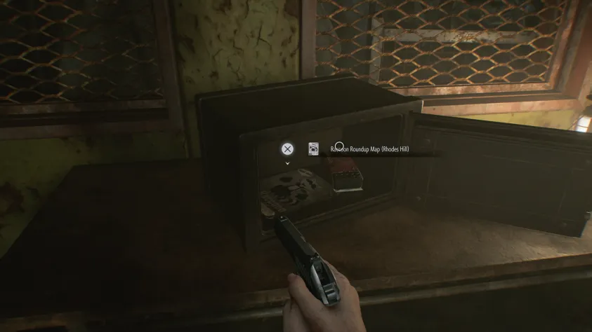Обязательно осмотрите сам кабинет справа. Внутри лежит отчёт охранника (документ 41/75), обломки на полке и сейф справа. Если помните первый деформированный шкаф, который Леон открыл на чердаке, то у вас есть код от данного сейфа: вправо до 60, влево до 40 и вправо до 80. Внутри лежат найдете патроны для пистолета и карта с расположением всех Мистеров Енотов в Роудс-Хилл.