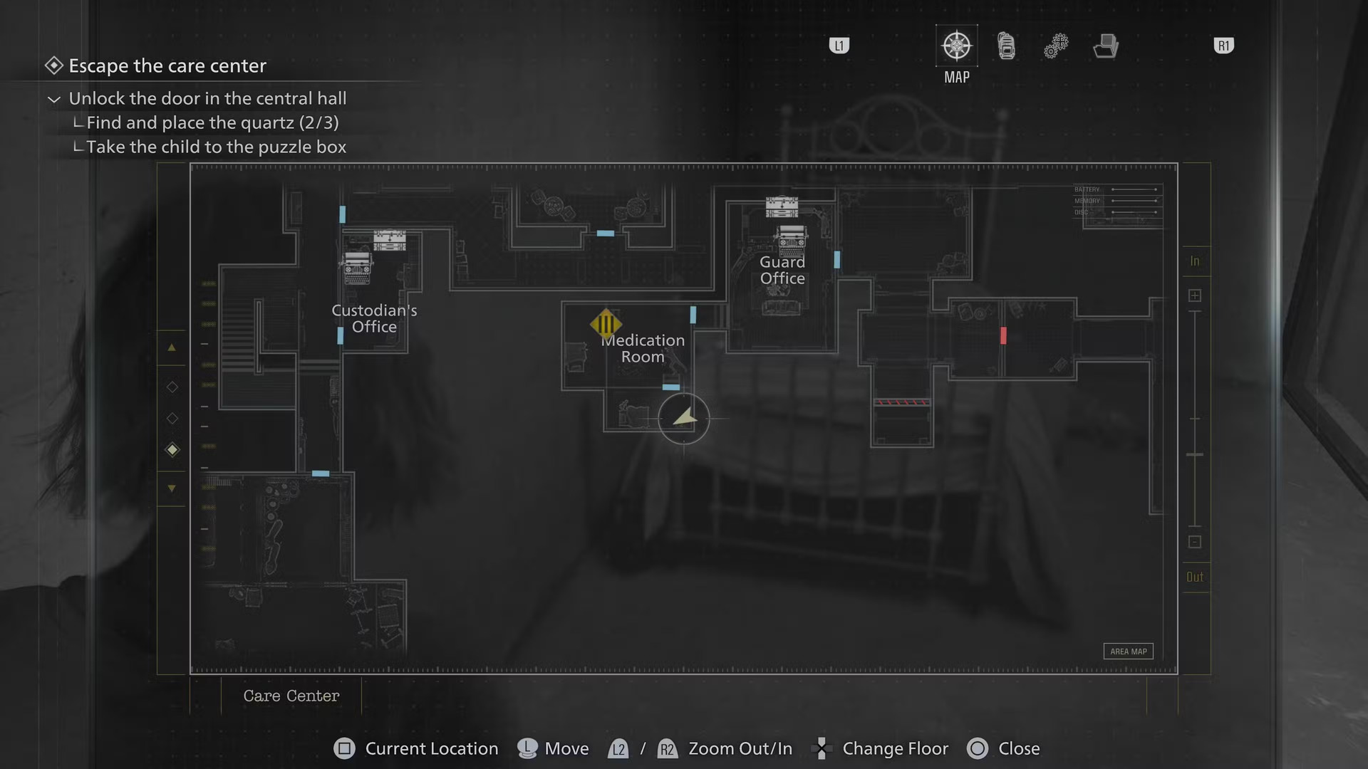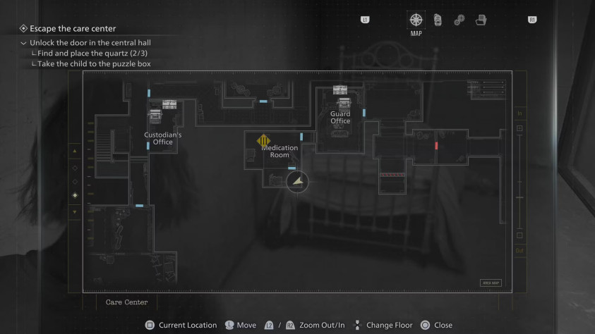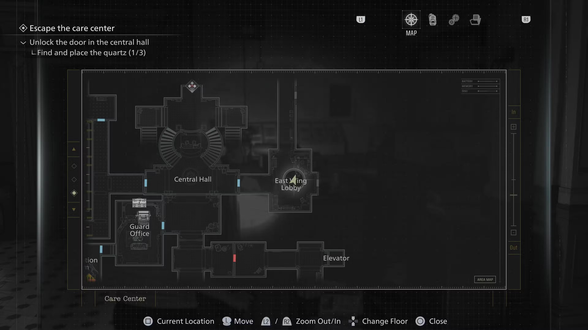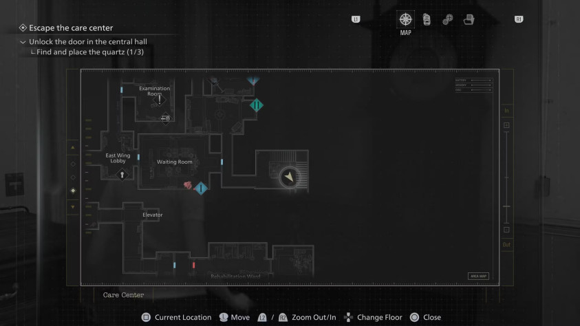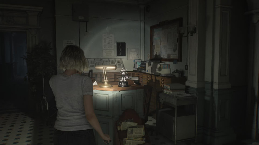 Играя за Грейс, осмотрите стойку регистрации в вестибюле восточного крыла. Попасть сюда можно после получения ключ-карты в гостиной западного крыла — она открывает дверь с символом единорога и даёт доступ к новой части комплекса. Вестибюль станет первой комнатой на пути.