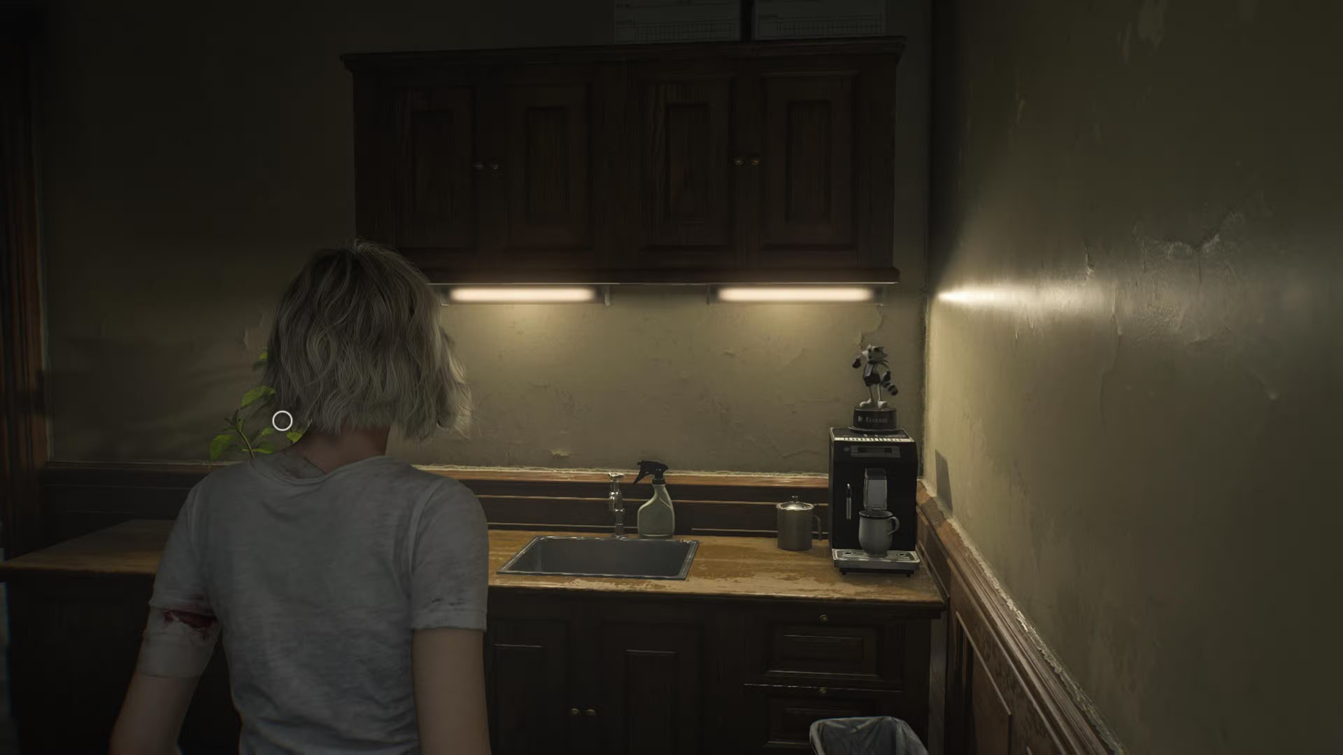 Фигурка стоит на кофемашине в углу небольшой кухни рядом с офисом на первом этаже западного крыла. Чтобы попасть сюда, сначала получите ID-браслет первого уровня возле кабинета главного исследователя в восточном крыле. Затем откройте дверь рядом с кухней, поднимитесь по лестнице и пройдите через офис прямо впереди — он выведет вас в мини-кухню.