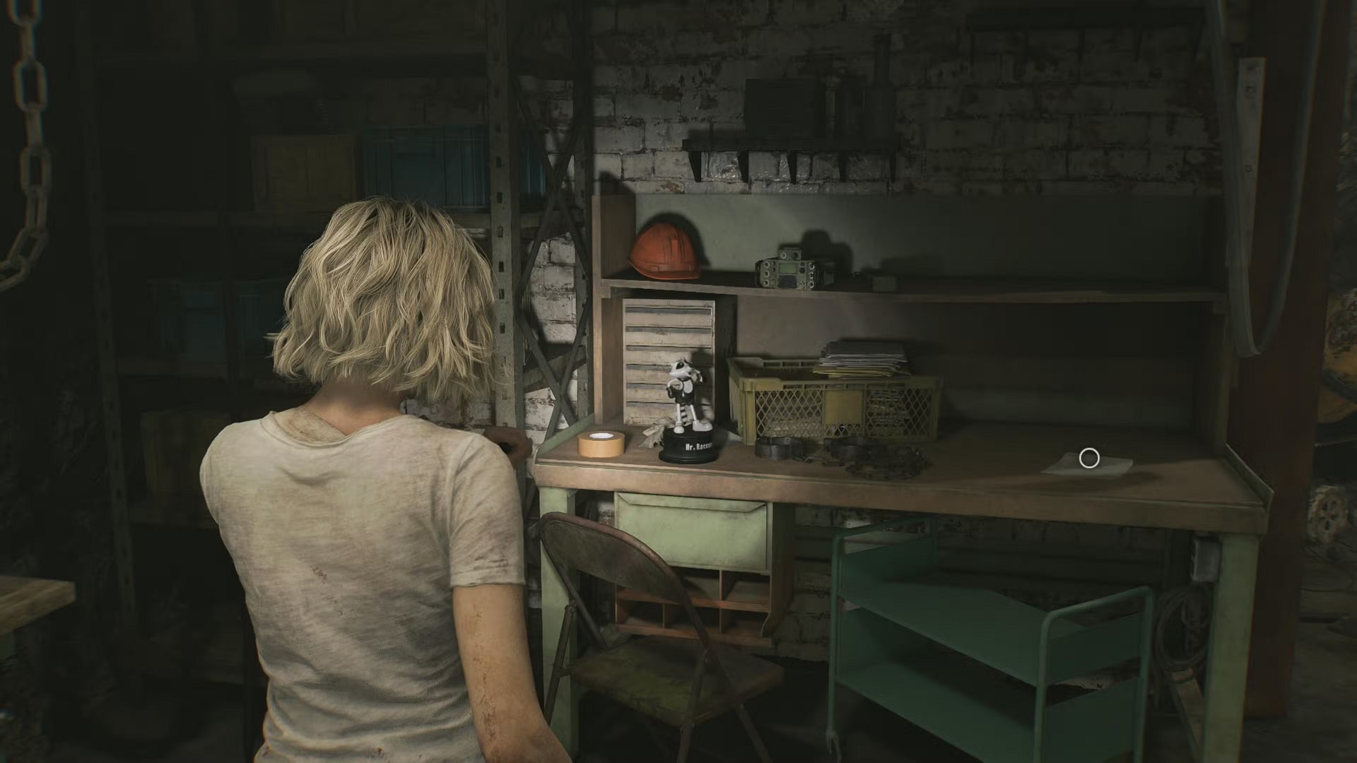 Во время подземного сегмента за Грейс используйте один из соединительных штекеров, чтобы подать питание на дверь в дальнем конце камер содержания. После открытия двери войдите в мастерскую — на рабочем столе стоит ещё одна фигурка Мистера Енота.