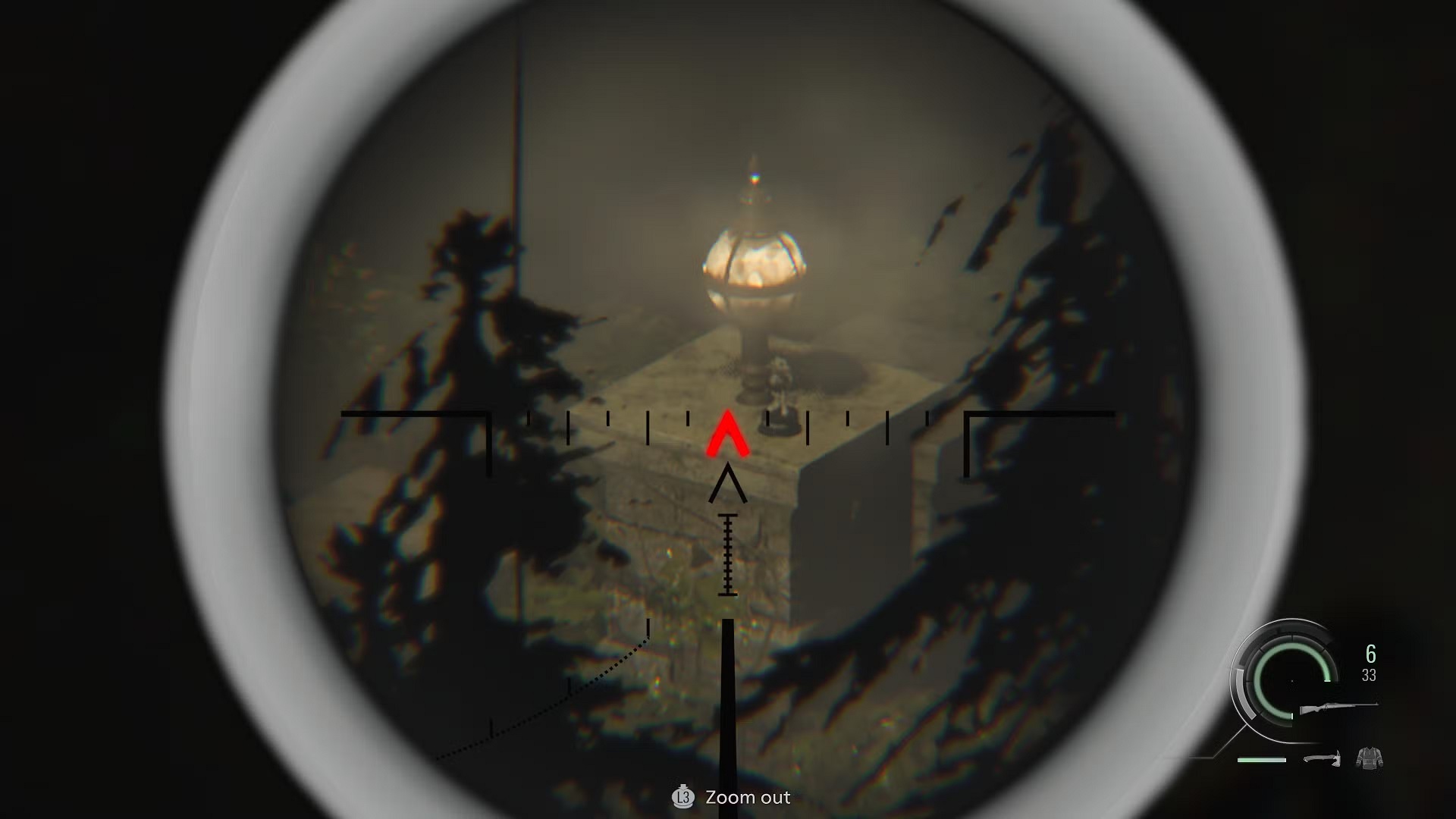 Играя за Леона, во время короткого эпизода со снайперской винтовкой, когда вы прикрываете Грейс после её вылета на вертолёте, можно уничтожить ещё одну фигурку. На первой позиции у окна посмотрите вперёд и немного вниз. Там видны металлические ворота и два столба с фонарями. Статуэтка стоит на дальнем столбе. Это один из самых легко пропускаемых Енотов, так как попасть по нему можно только из снайперской винтовки в этот короткий момент.