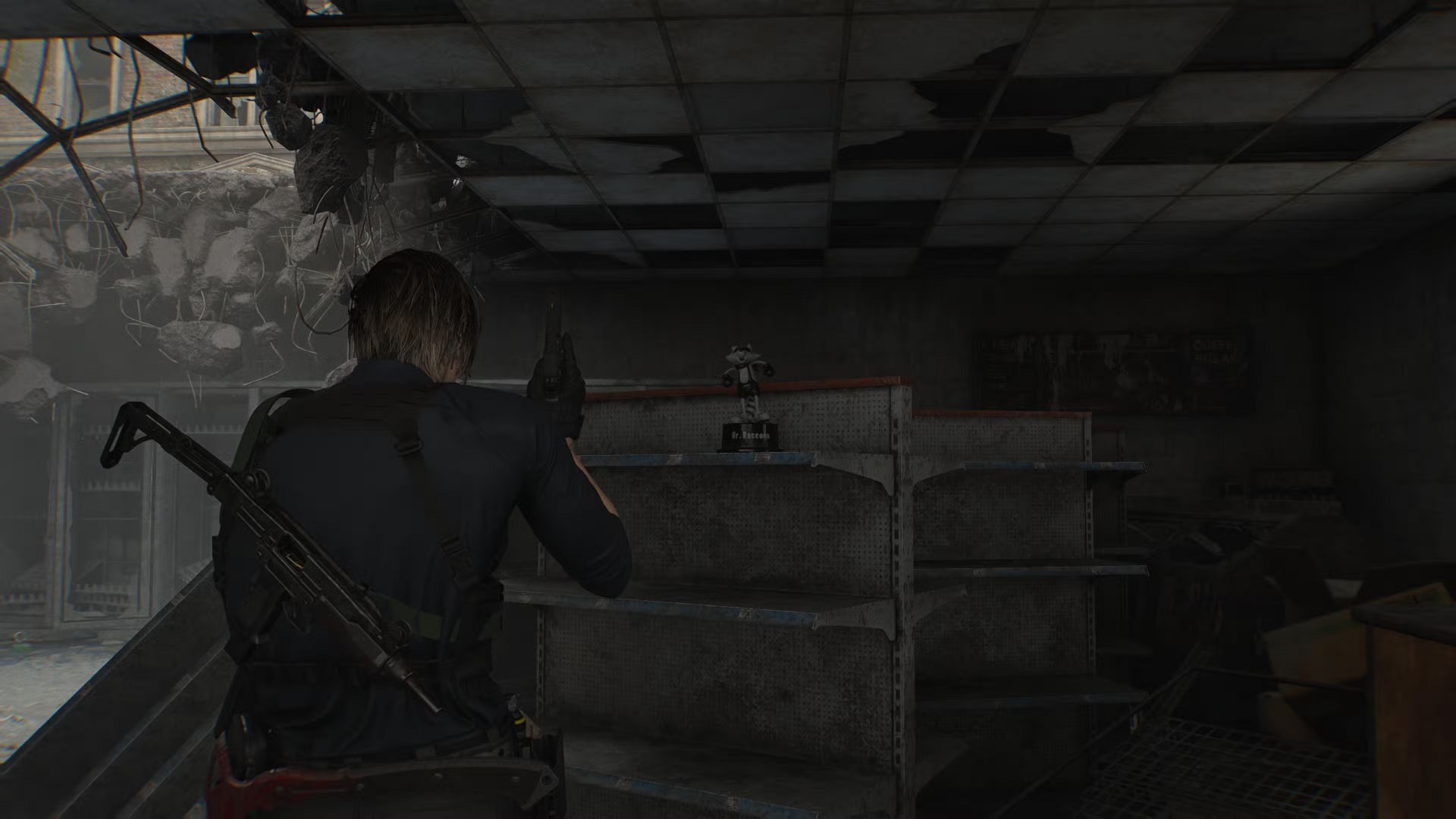 Всего в игре спрятано 25 фигурок Мистера Енота. Часть из них можно отследить с помощью специальных карт: одна находится в сейфе под медицинским центром, а другую можно приобрести в разделе дополнительного контента — она отмечает расположение статуэток уже в Раккун-Сити.