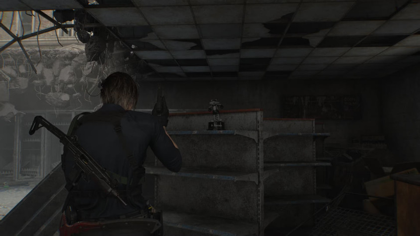Играя за Леона, после прибытия в город двигайтесь по дороге, затем сверните направо и после этого налево. Там будет вход в небольшое кафе. Зайдите внутрь и загляните за прилавок — на деревянном шкафу стоит фигурка.